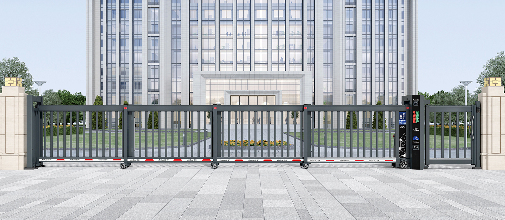 搭配車牌識別系統(tǒng),實現(xiàn)無人值守車輛快速通行及收費(fèi)功能,支持遠(yuǎn)程操控和實時監(jiān)控,操作簡單,效率高?,適合超大門洞凈空要求的場所?